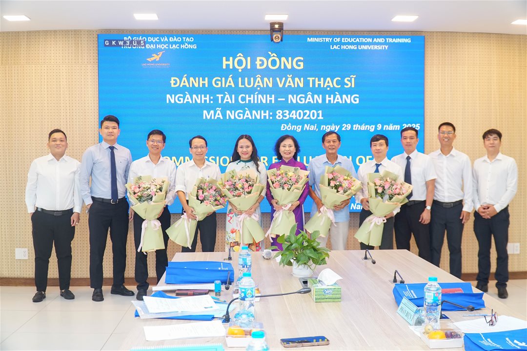 Ngày 29 tháng 9 năm 2025, tại phòng họp cơ sở 1 của Trường Đại học Lạc Hồng (LHU), Hội đồng đánh giá luận văn thạc sĩ chuyên ngành Tài chính - Ngân hàng đã tổ chức buổi bảo vệ luận văn cho 05 học viên. Buổi lễ diễn ra trong không khí trang trọng và đầy tính học thuật, với sự tham gia của các nhà khoa học, giảng viên uy tín và các chuyên gia đầu ngành.