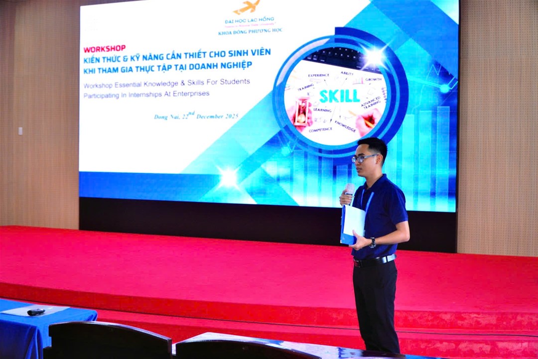 Sáng ngày 22/12/2025, Khoa Đông phương học đã tổ chức Workshop “Kiến thức và kỹ năng cần thiết cho sinh viên khi tham gia thực tập tại Doanh nghiệp” nhằm hỗ trợ sinh viên năm cuối chuẩn bị hành trang cần thiết trước giai đoạn thực tập và định hướng nghề nghiệp.