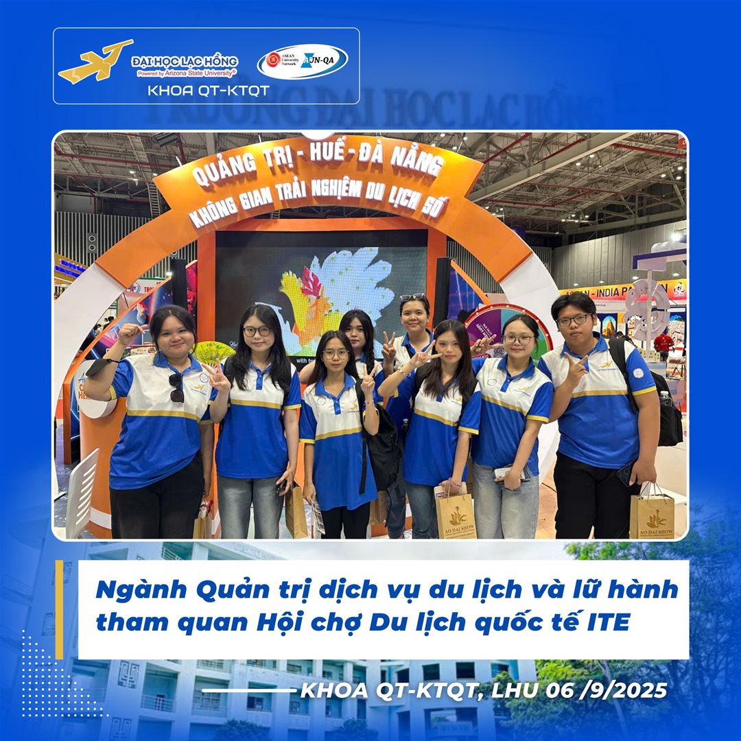 Khoa Quản trị – Kinh tế quốc tế hướng đến xây dựng thế hệ sinh viên Quản trị dịch vụ du lịch và lữ hành có tư duy toàn cầu, kỹ năng nghề nghiệp vững vàng và khả năng thích ứng cao trong bối cảnh hội nhập quốc tế. Những chuyến đi thực tế như ITE 2025 không chỉ giúp sinh viên “đi để thấy”, mà còn “học để làm” – từng bước khẳng định năng lực và bản lĩnh của sinh viên Lạc Hồng trên bản đồ đào tạo du lịch chất lượng Việt Nam