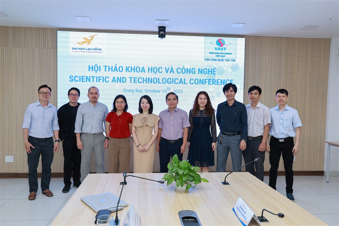 Sáng ngày 15/10/2025, tại phòng họp Trường Đại học Lạc Hồng, Khoa Dược LHU phối hợp cùng Viện Công nghệ Tiên tiến tổ chức Hội thảo Khoa học và Công nghệ, nhằm tăng cường hợp tác nghiên cứu, chia sẻ kinh nghiệm và định hướng phát triển trong lĩnh vực khoa học ứng dụng.