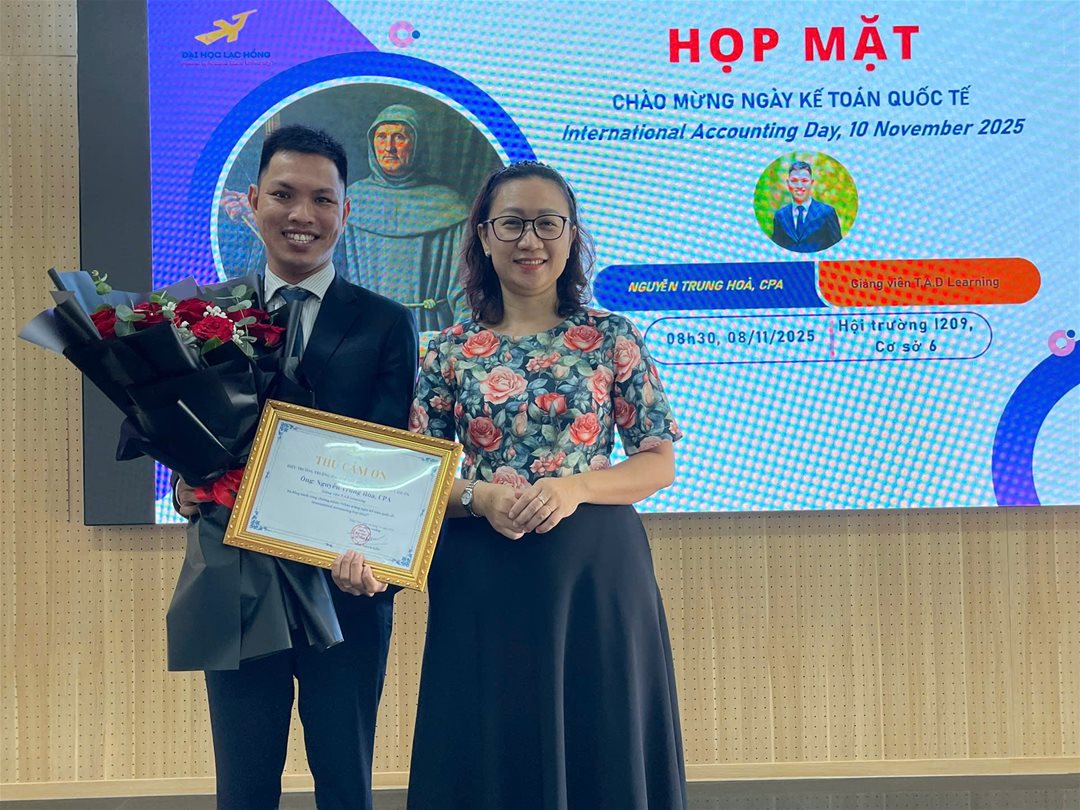 Sáng ngày 08/11/2025, tại Hội trường I209 – Cơ sở 6, Khoa Tài chính – Kế toán, Trường Đại học Lạc Hồng đã long trọng tổ chức buổi gặp mặt chào mừng Ngày Kế toán Quốc tế (International Accounting Day) – ngày tôn vinh những đóng góp của ngành kế toán đối với sự phát triển của kinh tế – xã hội.