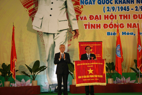 At the ceremony, Mr. Vo Van Mot – Chairperson of Dong Nai provincial People's Committee made a commemorative speech on the 65th anniversary of National Day of the Socialist Republic of Vietnam, jointly reviewing our nation’s gloriously historical traditions in August Revolution 1945. After that, Mr. Le Mai Thanh - Deputy Director of Department of Interior Affairs, Permanent Vice Chairman of Dong Nai provincial Emulation and Reward Council approved reports on the patriotic emulation movements in the past five years (2005-2010) and mission directions next five years (2010-2015).