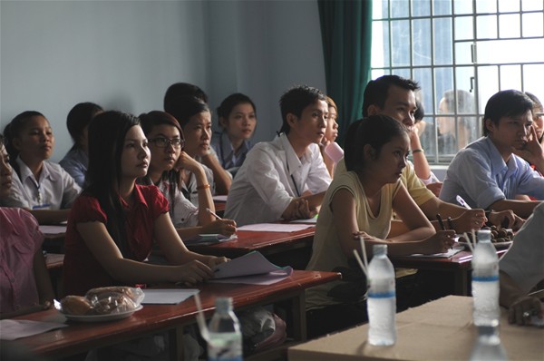 Students listening with concentration to teachers’ speeches in the workshop