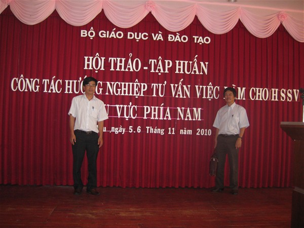 Recently, the two day seminar of November 5th and 6th , 2010 took place in Vung Tau with the theme "Training on vocational guidance, employment counseling for students in the Southern region” held by the Ministry of Education and Training with the participation of Dr. Dang Duy So (Director), Tran Dung, M.A (Vice Director) of Center for International Relations Overseas Study and Employment - Lac Hong University.