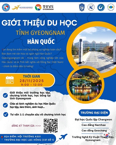 - Introduction to the learning environment, academic programs, and scholarships in Gyeongnam province – one of South Korea’s major industrial hubs and the sister province of Dong Nai;