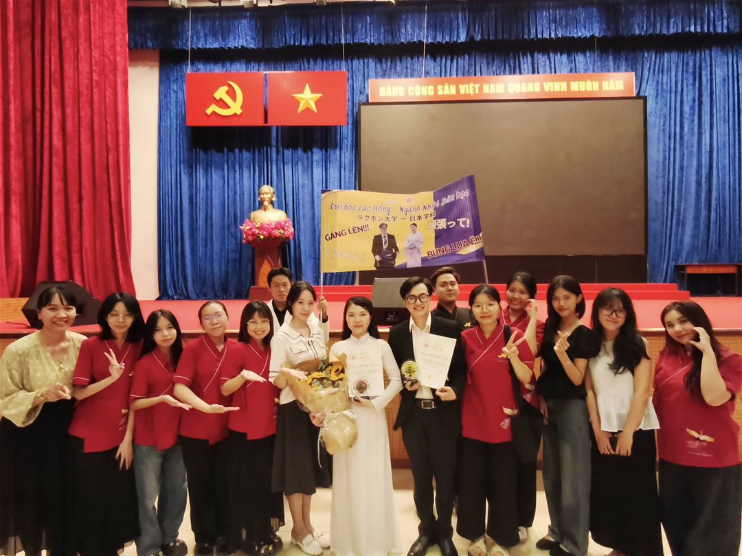 Hai đại diện ưu tú của ngành Nhật Bản học, Trường Đại học Lạc Hồng, là sinh viên PHAN THỊ NGỌC ÁNH và TRẦN QUỲNH TRANG đã vượt qua nhiều đối thủ mạnh và đạt được ngôi vị QUÁN QUÂN ở hạng mục Japanese Plus đầy thử thách! Thành tích này không chỉ khẳng định chất lượng đào tạo chuyên môn của Đại học Lạc Hồng mà còn minh chứng cho tài năng, sự sáng tạo và niềm đam mê mãnh liệt với tiếng Nhật và văn hóa Nhật Bản của thế hệ trẻ Việt Nam.