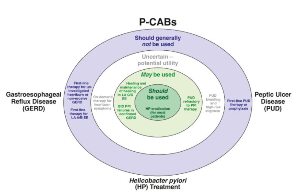 2. Wong N, Reddy A, Patel A. Potassium-Competitive Acid Blockers: Present and Potential Utility in the Armamentarium for Acid Peptic Disorders. Gastroenterol Hepatol (N Y). 2022;18(12):693-700.
